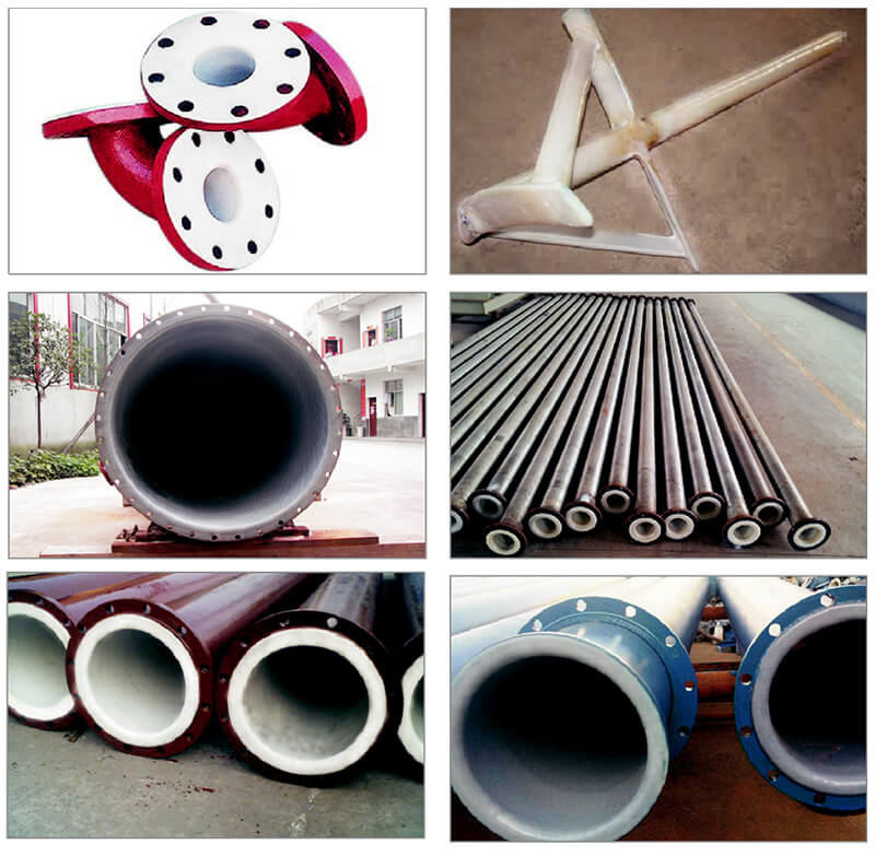 公司PE(PO)襯里采用的原材料是進(jìn)口粉末狀的線(xiàn)性低密度聚乙烯(LLDPE),它的加工方法為旋轉(zhuǎn)成型,工件(鋼制容器或管道)在旋轉(zhuǎn)的過(guò)程中加熱,粉狀樹(shù)脂的工作表面吸熱熔融,旋轉(zhuǎn)一次便粘上一層粉狀樹(shù)脂,隨即吸熱融化,最后加工至規(guī)格厚度后冷卻成型,所以它在工藝上保證了襯層無(wú)針孔、無(wú)泄漏、無(wú)任何焊縫。并且該工藝對(duì)工件的內(nèi)外結(jié)構(gòu)無(wú)要求,無(wú)論結(jié)構(gòu)如何復(fù)雜,均能加工成型。在工件較大,運(yùn)輸有困難的情況下還可以現(xiàn)場(chǎng)施工,使用溫度在100℃以?xún)?nèi),在酸、堿、鹽等強(qiáng)腐蝕介質(zhì)中能長(zhǎng)期穩(wěn)定使用,廣泛用于冶金、化工、制藥、食品、環(huán)保、能源等行業(yè)中接觸腐蝕介質(zhì)的管道、槽、罐、塔、風(fēng)機(jī)、交換器、攪拌槳、閥門(mén)等。
